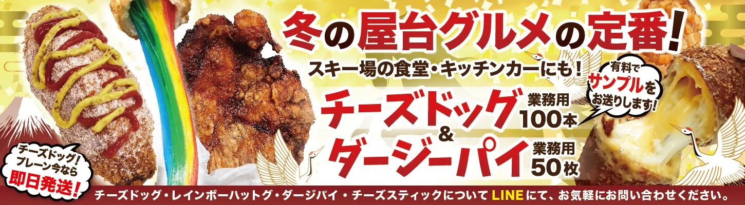 ※チーズドッグ・チーズスティックは100本単位、ダージーパイは50枚単位で卸販売を承っています。